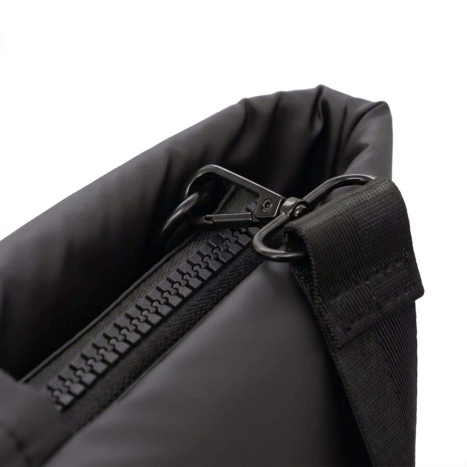 A tote designed to grow with your day. Loop combines a structured tote silhouette with expandable functionality and organized interior storage. Crafted from linear quilted recycled polyester, it transitions easily from workdays to travel. Recycled Fabric Construction: Made from durable recycled polyester fabric. Laptop Protection: Padded sleeve fits laptops up to 17″. Smart Organization: Interior pockets help keep daily essentials organized. Travel-Ready Design: Built-in trolley sleeve simplifies travel. Carry Options: Removable crossbody strap for hands-free convenience. Expandable Design: Expandable base provides additional storage capacity. 20.0000″ L x 6.5000″ W x 13.0000″ H