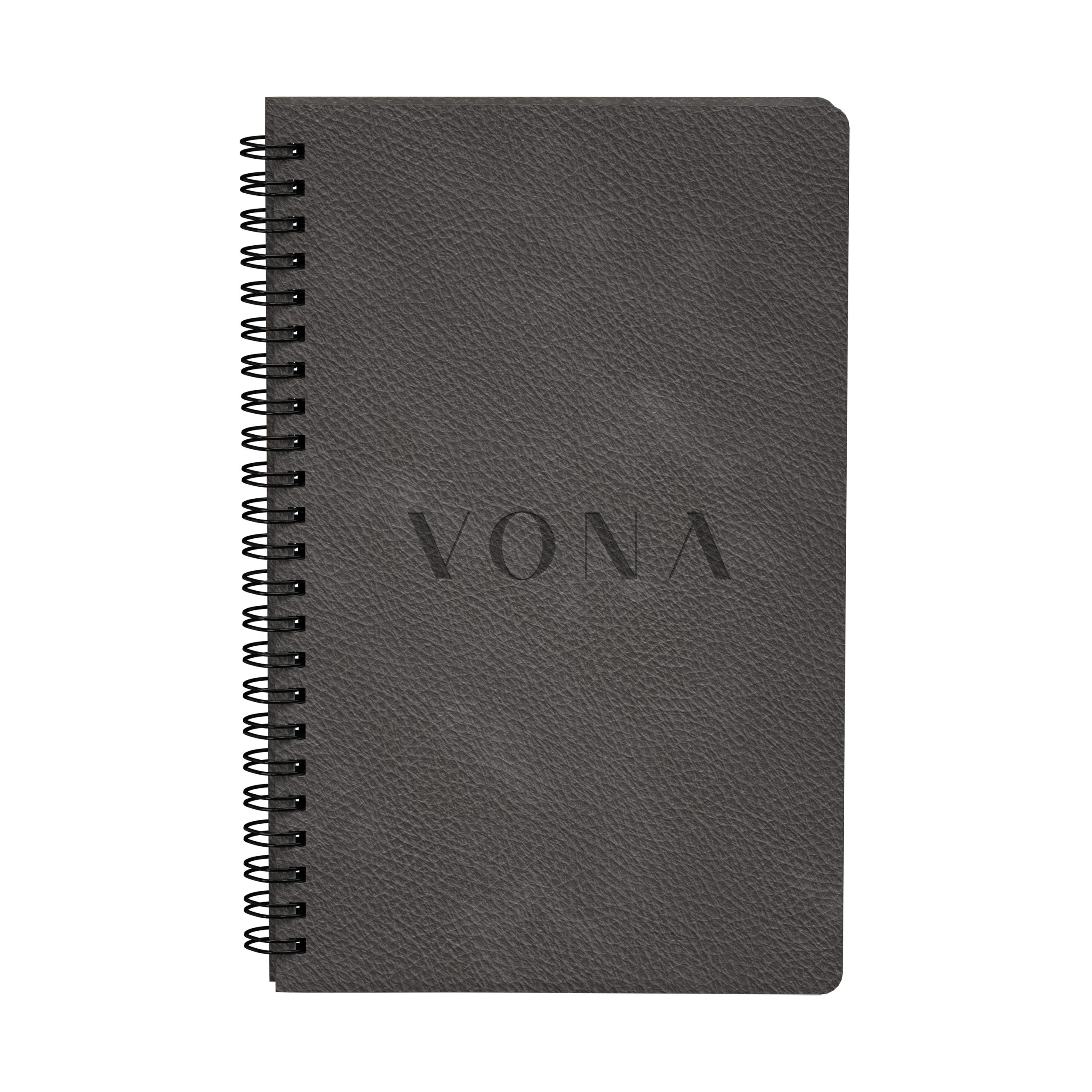 An eco-friendly spiral journal designed for practical note-taking and planning The cover is made with recycled PU for a sustainable finish while the interior features FSC-certified paper with a weight of 80g for smooth writing Includes a tear line for easy page removal a date feature for organized notes and durable spiral binding for flexibility Ideal for meetings planning sessions or daily journaling. 5.2750″ L x 8.2750″ W x 0.5000″ H