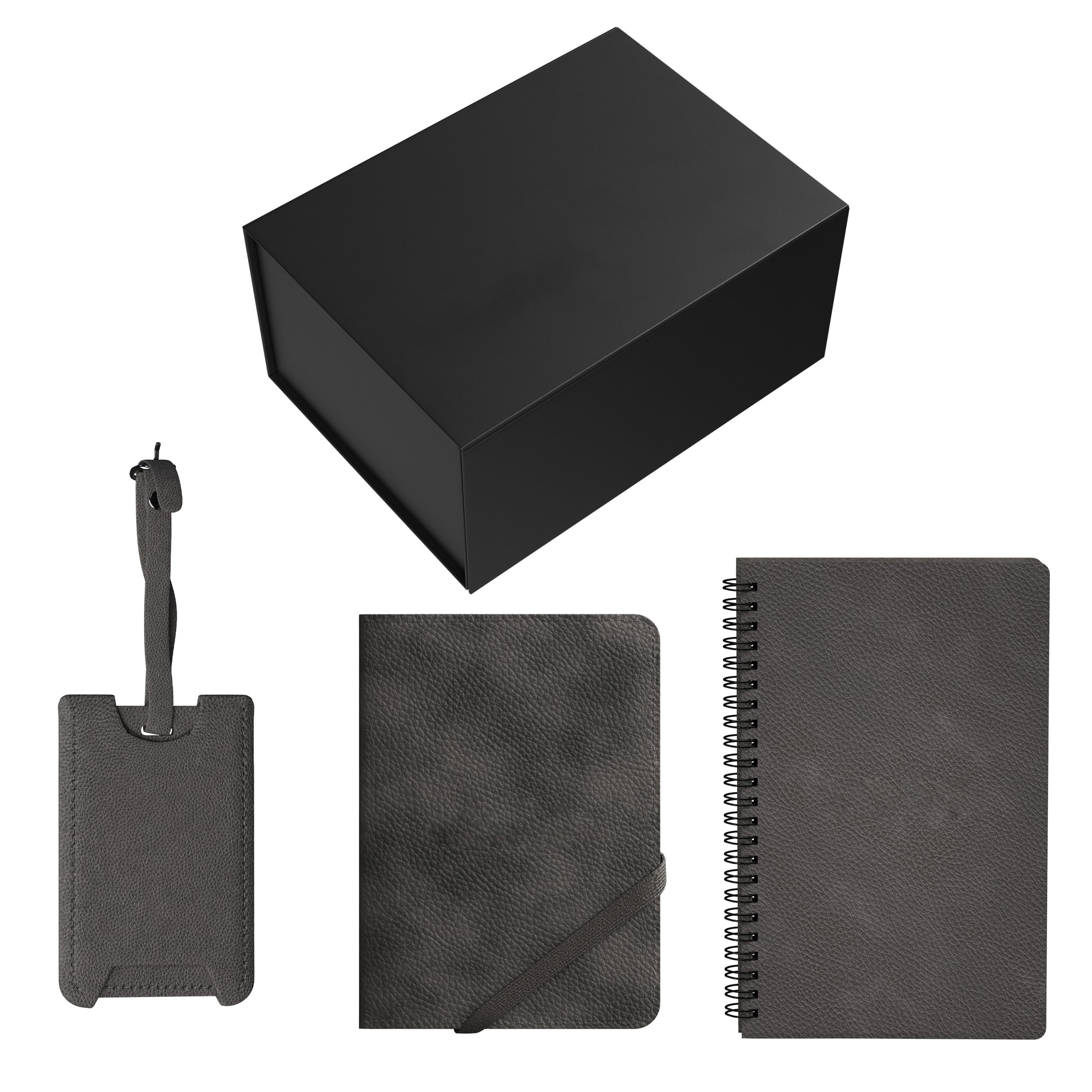 Gift Set includes ST3206 OLD MONEY SOFT COVER SPIRAL JOURNAL ST181 OLD MONEY PASSPORT HOLDER G542 OLD MONEY PEEKABOO LUGGAGE TAG P1264 SMALL MATTE BLACK MAGNETIC GIFT BOX PCRINK BLACK CRINKLE FILL ComponentsG542′,’P1264′,’ST181′,’ST3206. 11.5000″ L x 5.5000″ W x 8.5000″ H